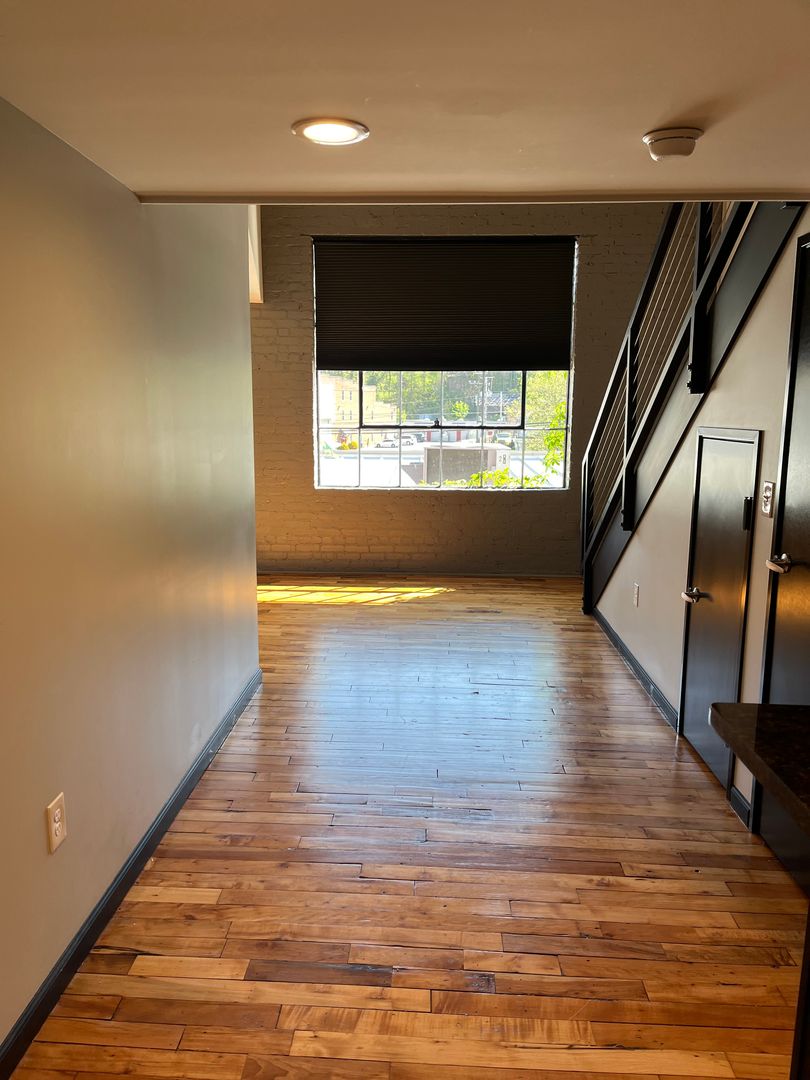 Beautiful 1 bedroom, 1 bath loft apartment at out Harwood Professional Building in downtown Marion, VA. High end finishes along with stainless steel appliances. Washer and dryer included. High speed internet available. Garage parking available (please ask for details and if spaces are open).
